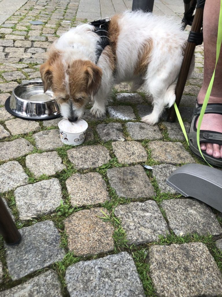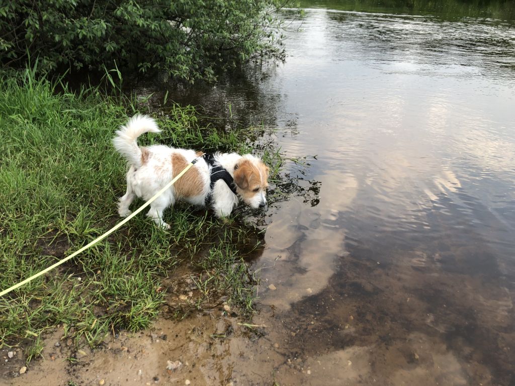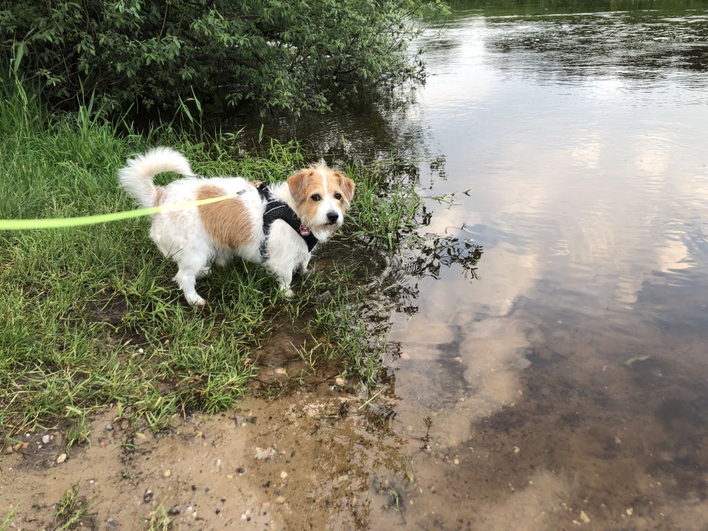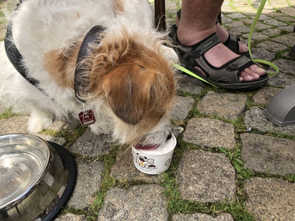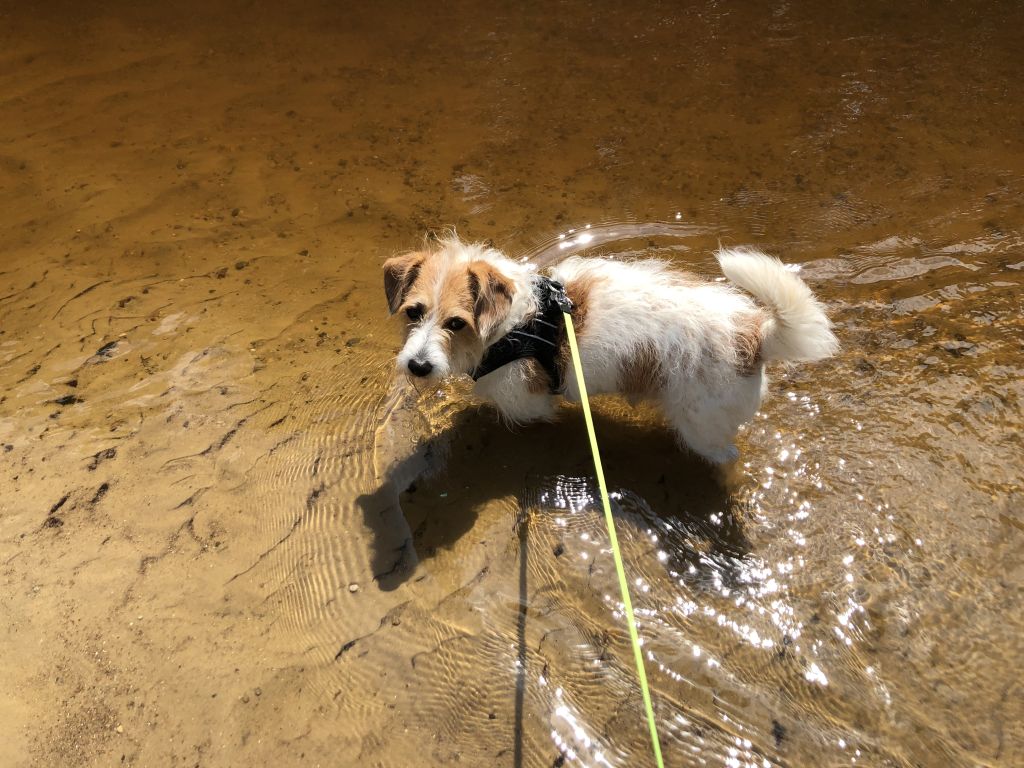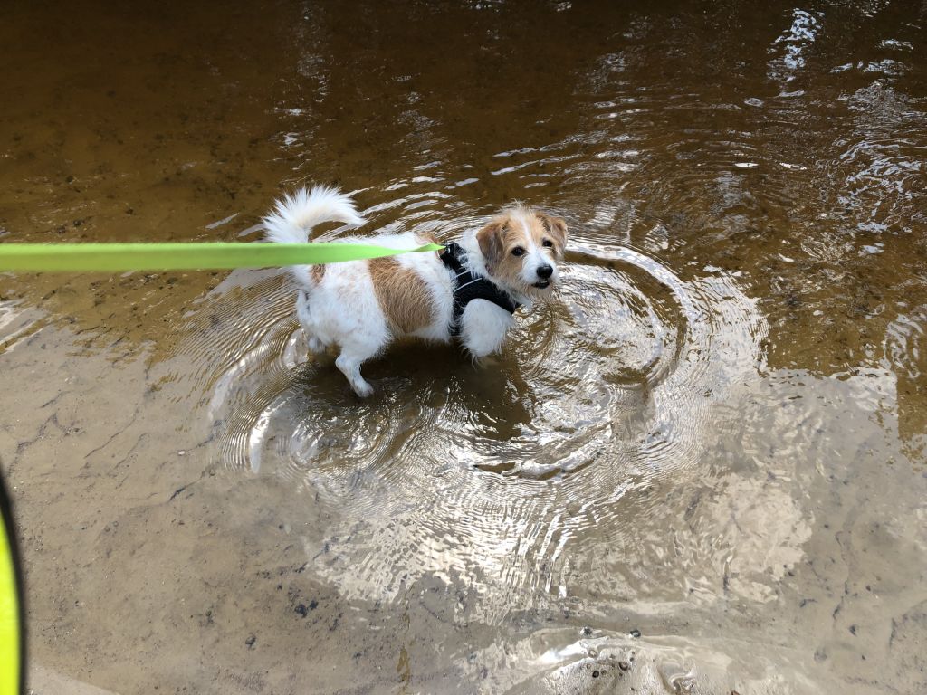 Teddy nimmt ein Fußbad. Mehr muss nicht.